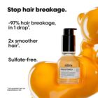 Täyteläinen koostumus imeytyy välittömästi hiuskuituihin latistamatta niitä. Hiuksistasi tulee 10 % tuuheamman tuntuiset. Pörröiset hiukset tuntuivat hallittavimmilta ja antaa lämpösuojan joka suojaa hiuksia jopa 230 °C:n lämmöltä.